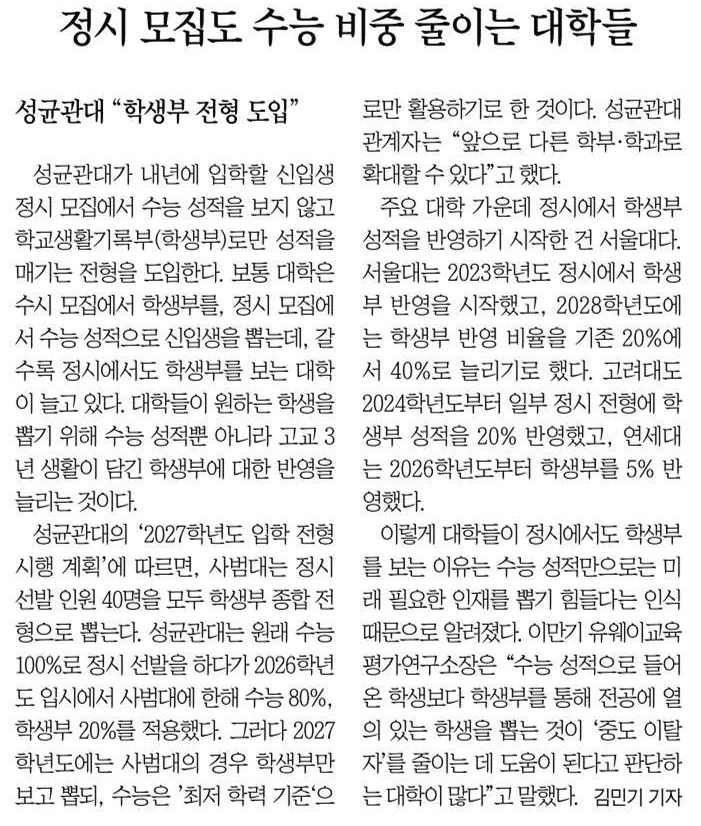 [전체]정시 모집도 수능 비중 줄이는 대학들