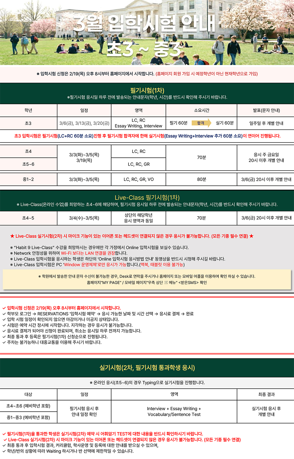 ▶ Live-Class 필기시험(1차) 응시방법 안내 (Online 수업/초5~6에 해당)