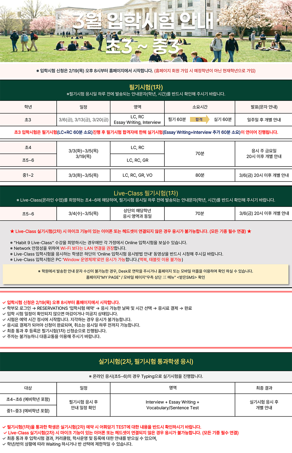 ▶ Live-Class 필기시험(1차) 응시방법 안내 (Online 수업/초5~6에 해당)